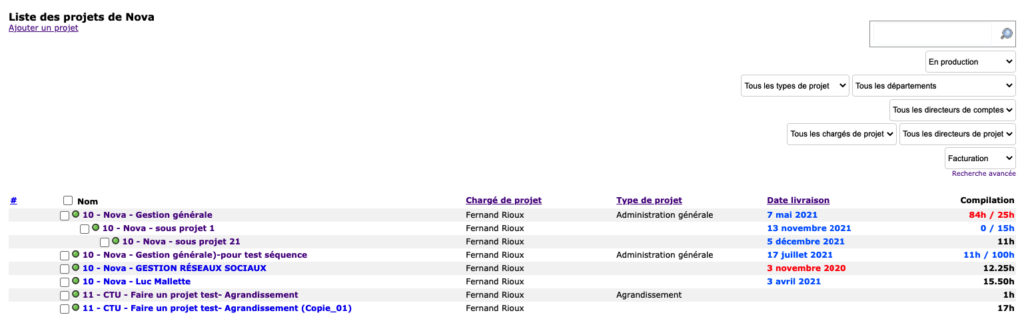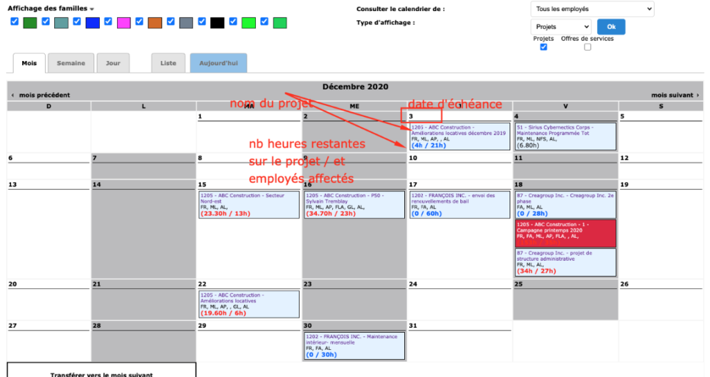 The production calendar is your ideal tool that gathers both deadlines and the number of hours remaining on your projects. Overtime is visible at a glance.
