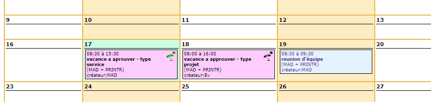 Then, a green umbrella visual icon appears in the employee’s calendar. A black umbrella indicates that the application is still pending approval.