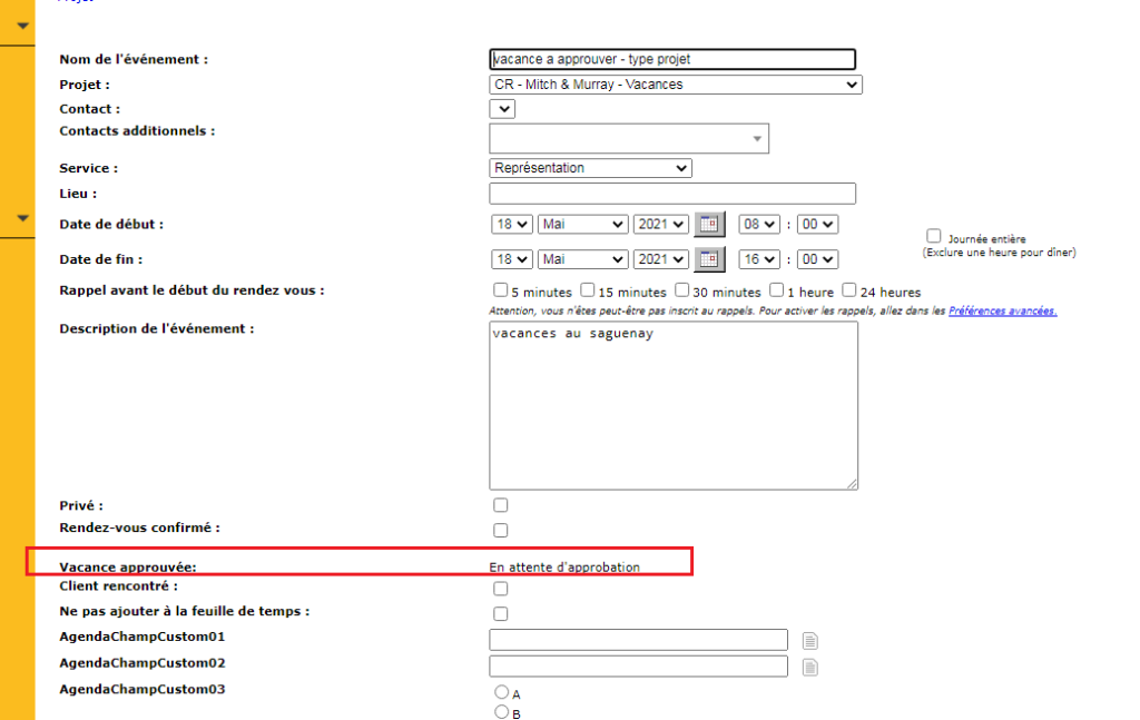 Plan your employees’ vacations and vacations by allowing them to create an appointment on a “Vacation” or “Leave” project. This way, they can plan their absences and you can be notified immediately and approve or not their request.