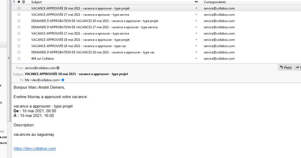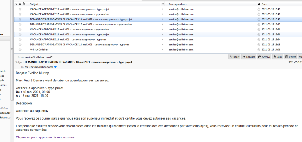 As a supervisor, you receive a warning email that Mr. Employee has created a vacation agenda.