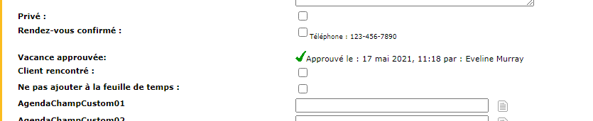 First, look in the “appointment” form and observe the green check mark including the date and name of the supervisor who approved the vacation.