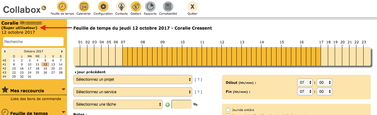 Coralie is automatically transported to Bastien’s Collabox account. She then enjoys the same privileges as Bastien. She must therefore be careful since it is easy to make the wrong account and thus make changes in her colleague’s Collabox.