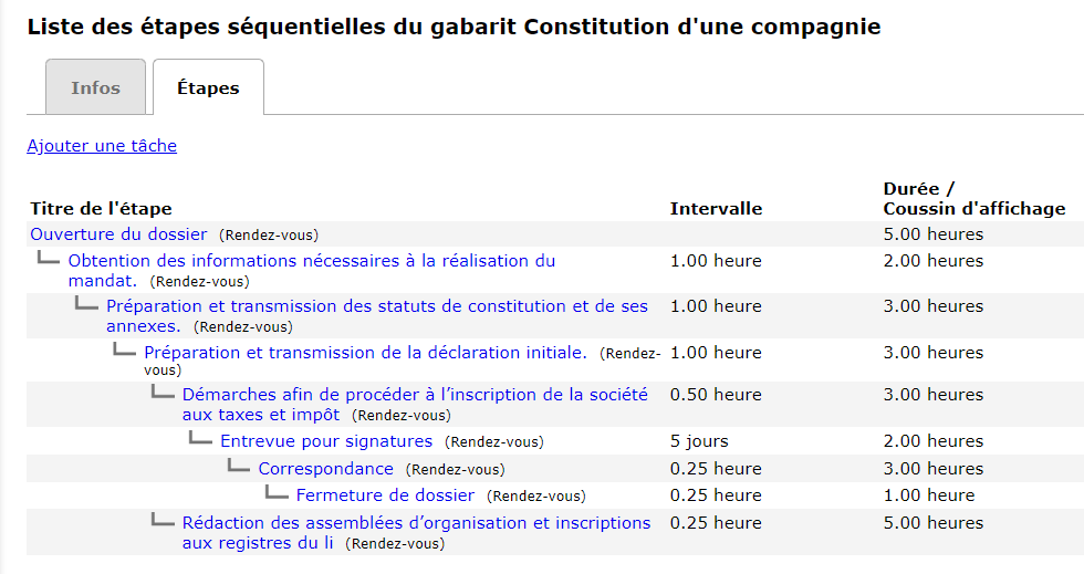 This page shows you all the templates you have created. In this page, you can also modify an existing template by clicking on its name or create a new one. To do this, click on “Add a sequential task template”.