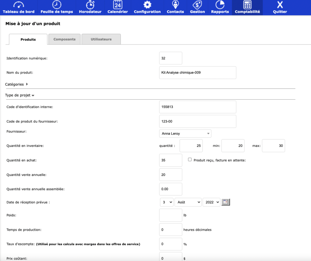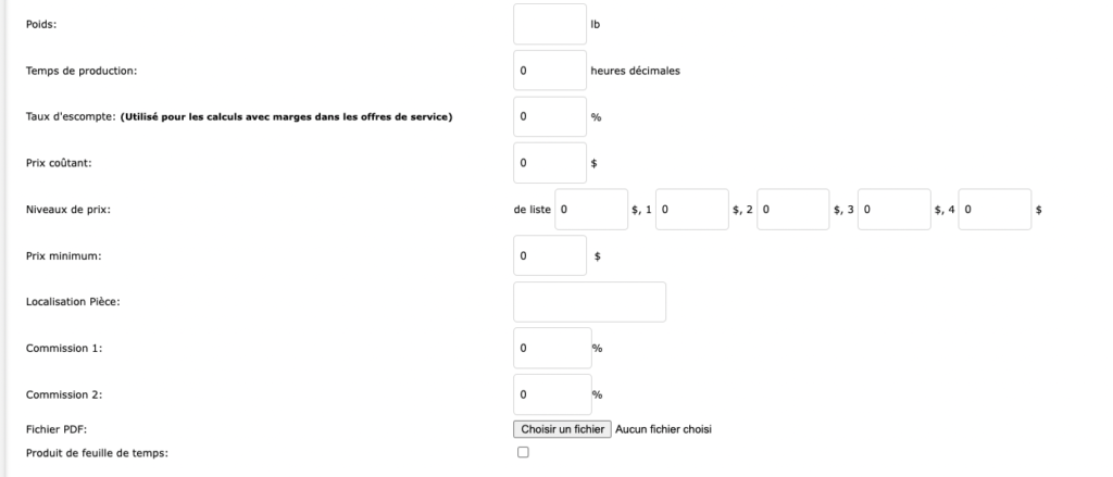 The product sheet allows you to manage the product specifications in addition to managing the inventory. In the same form, information about prices (minimum, list price), commissions and others.