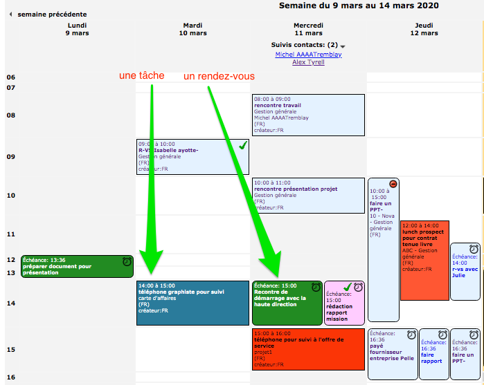 Note 1 : It’s exactly the same principle for the appointments : they can be moved by “drag and drop” too