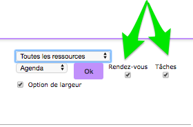 To display tasks and appointments at the same time in your calendar, you just need to check the boxes Appointment and Tasks located at the top left of the calendar. You can uncheck one of the two at any time to view only what you want.